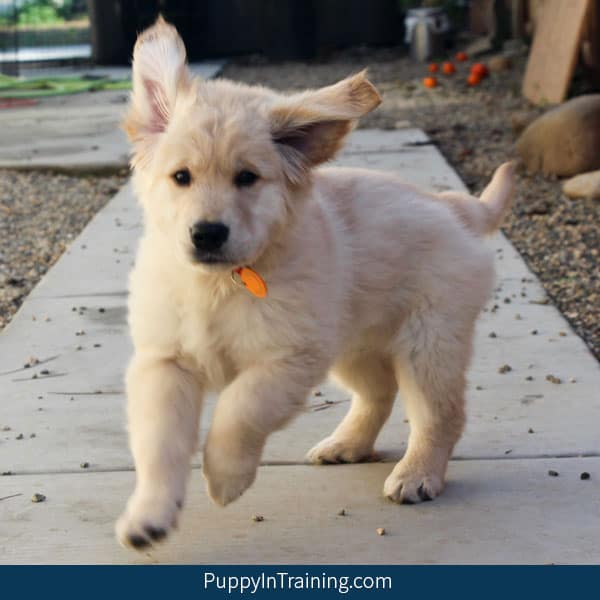 - Channel Your Puppy’s Energy In A Positive Way – Instead of letting your puppy go nuts running around the house uncontrollably try engaging in a game on your terms by teaching your puppy to fetch. Our little Bear is a Golden Retriever so fetching his toys comes naturally and he enjoys playing the game. Even if your puppy already knows the game of fetch we’d suggest using a leash or long line to make sure your puppy always comes back to you. This could also be a good time to work on your puppy’s recall and teach him his name. Getting your puppy’s mind on track can often time break him of the crazies.