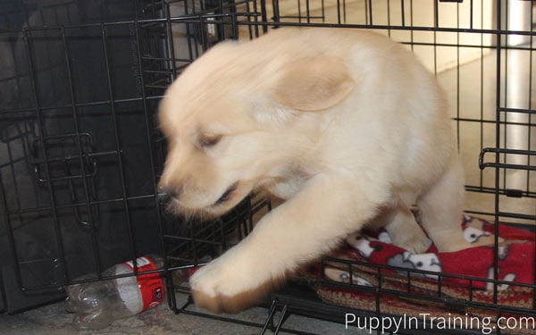 - Let Your Puppy Take A Break In His Crate – As J.C. mentioned her puppy goes crazy sometimes when he is “extremely tired.” If this is the case we will sometimes use our crate to calm down our puppy, but be careful because you don’t want your puppy to have a negative association with his crate. When our puppy is extremely tired and doing the “crazy thing” he will go right to sleep in less than 60 seconds after being put in the crate. Our trick is we will usually lure him to and into the crate with his favorite treat then once inside the crate we’ll give him a couple of treats and in under a minute our puppy is snoring away.