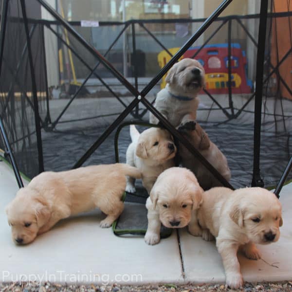 All the weeks we spent with our six little Golden pups were a joy, but week 4 just might be my favorite.
