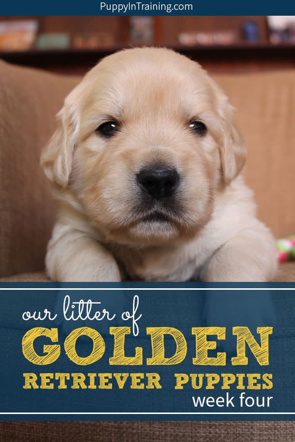 Here’s what happens with a litter of Golden Retriever pups in week 4: