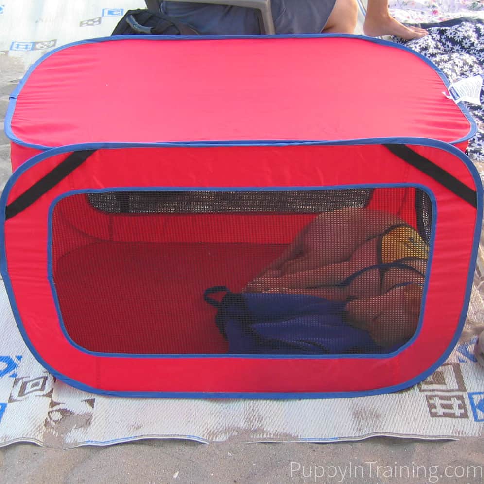 On a whim, we bought a pop-up travel crate at Target that we thought we’d use at the beach.